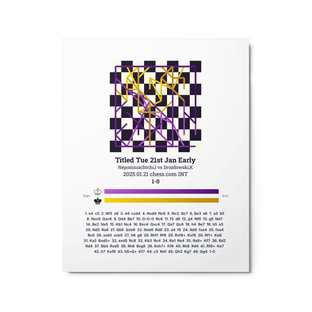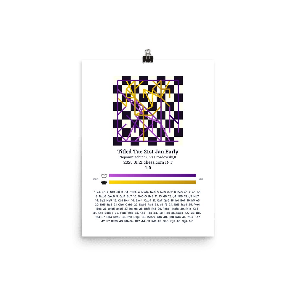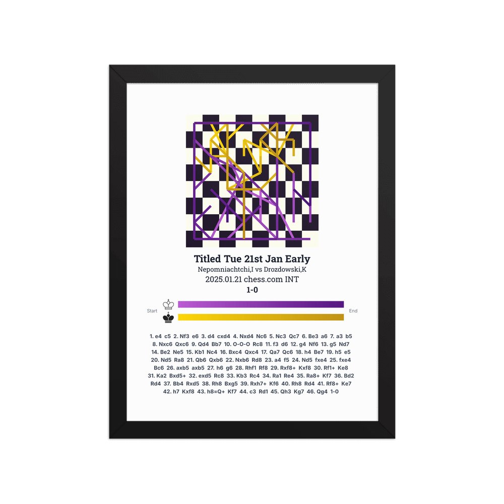 Museum-quality poster on thick, durable matte paper. A sharp, clean look for any chess visualisation.