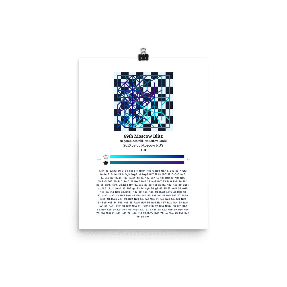 Museum-quality poster on thick, durable matte paper. A sharp, clean look for any chess visualisation.