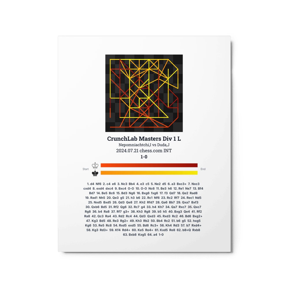 Museum-quality poster on thick, durable matte paper. A sharp, clean look for any chess visualisation.