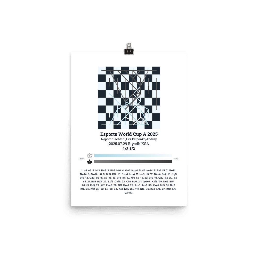 Museum-quality poster on thick, durable matte paper. A sharp, clean look for any chess visualisation.