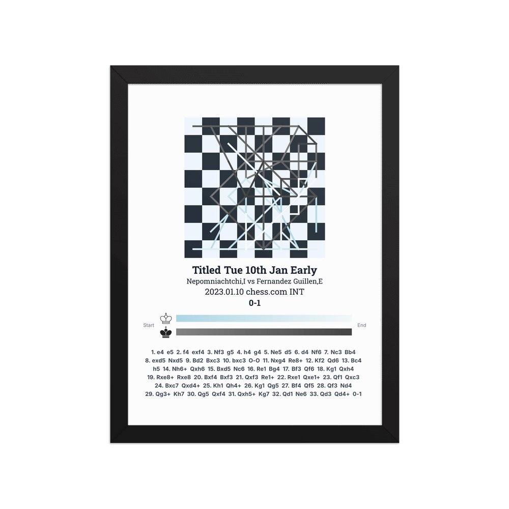 Museum-quality poster on thick, durable matte paper. A sharp, clean look for any chess visualisation.