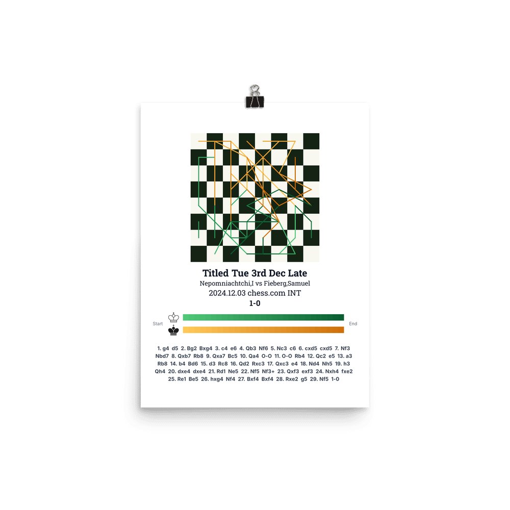 Museum-quality poster on thick, durable matte paper. A sharp, clean look for any chess visualisation.