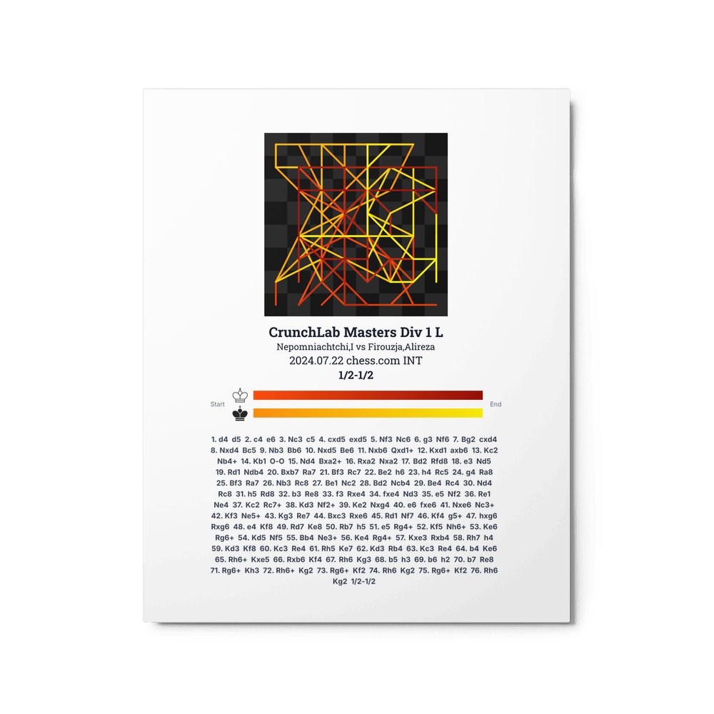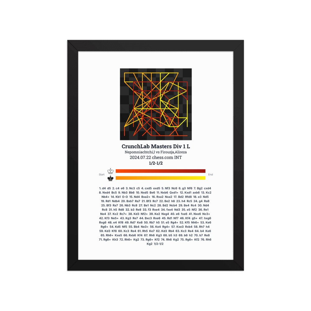 Museum-quality poster on thick, durable matte paper. A sharp, clean look for any chess visualisation.