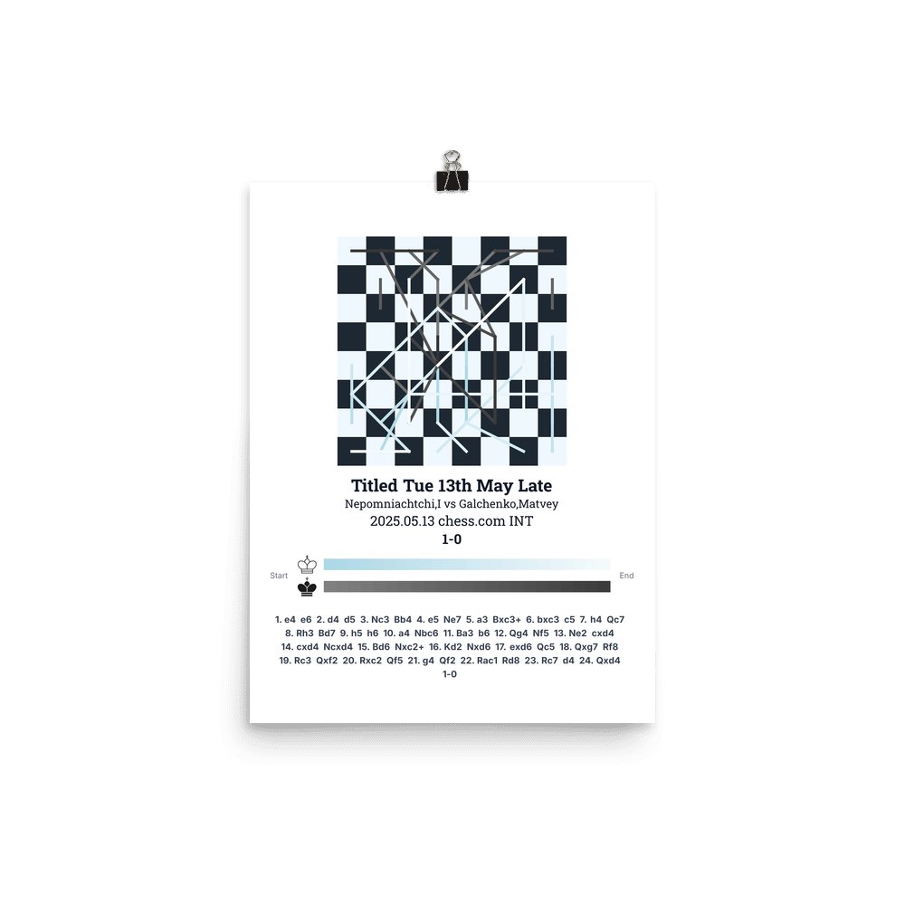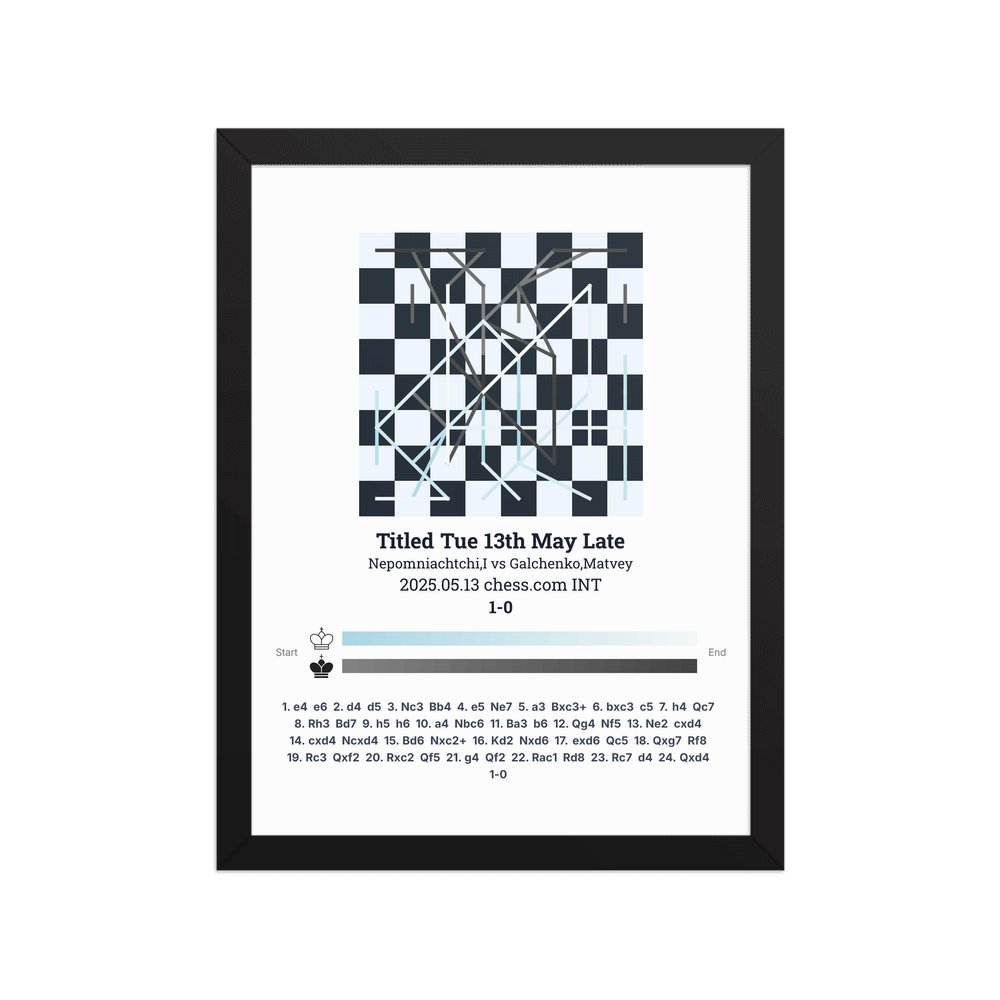 Museum-quality poster on thick, durable matte paper. A sharp, clean look for any chess visualisation.