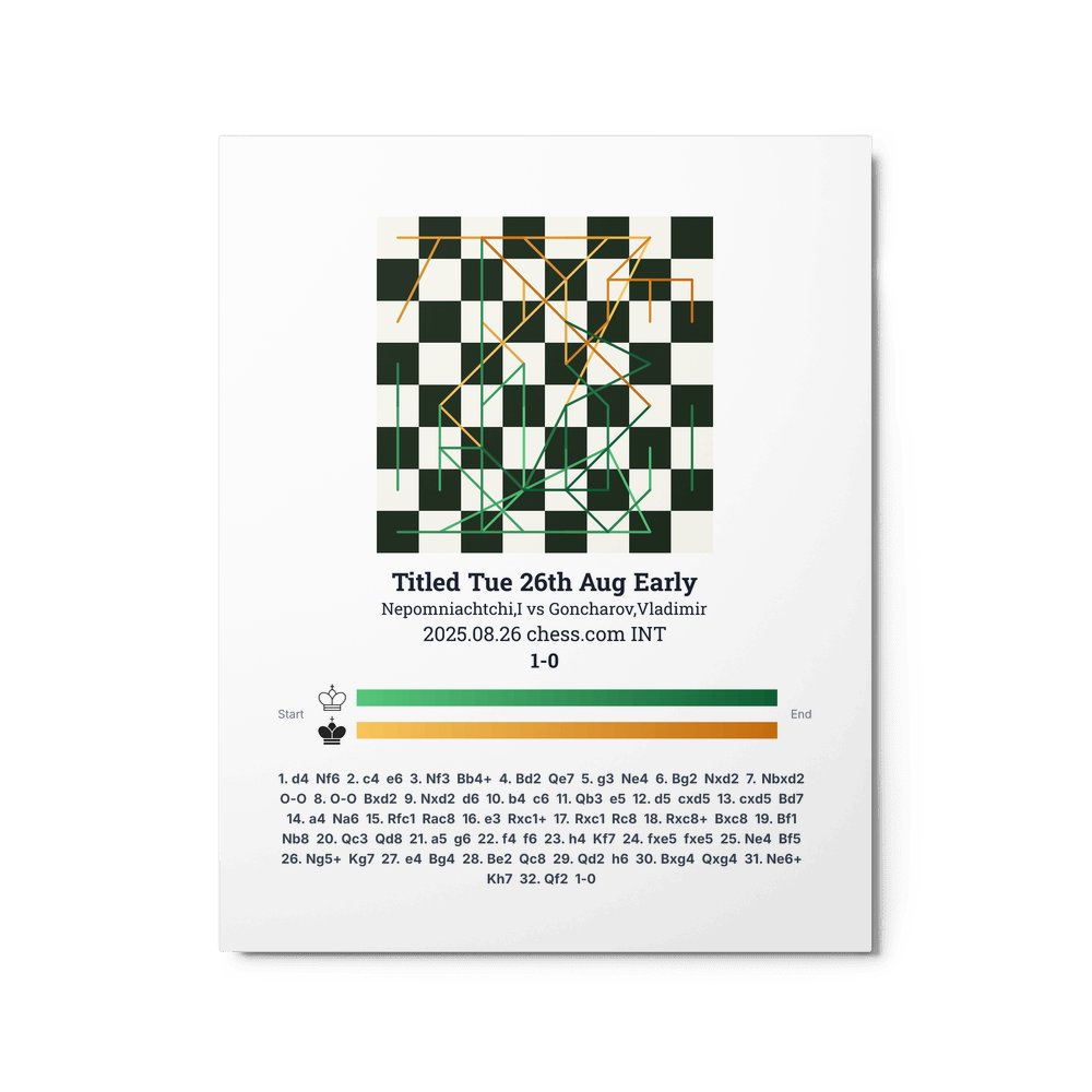Museum-quality poster on thick, durable matte paper. A sharp, clean look for any chess visualisation.
