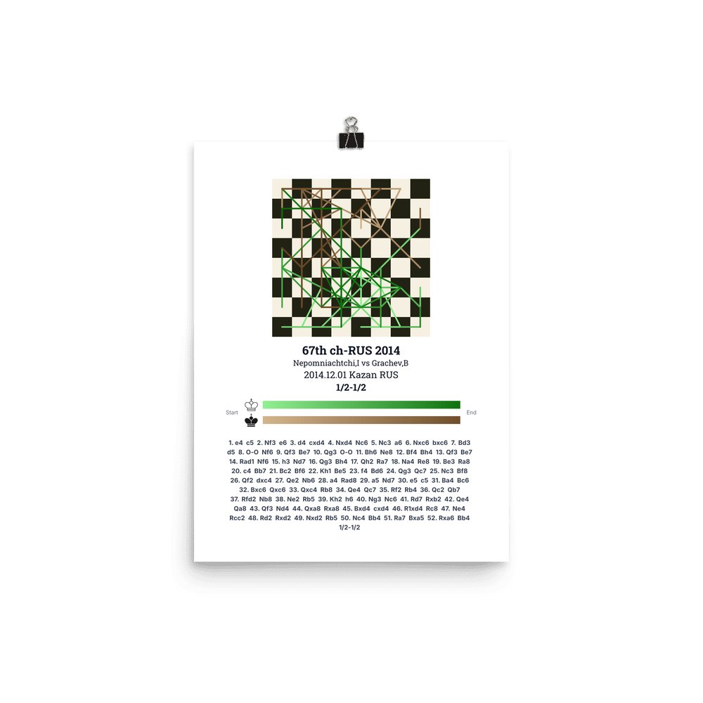 Museum-quality poster on thick, durable matte paper. A sharp, clean look for any chess visualisation.