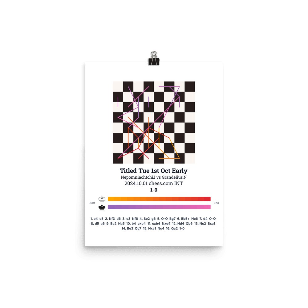 Museum-quality poster on thick, durable matte paper. A sharp, clean look for any chess visualisation.