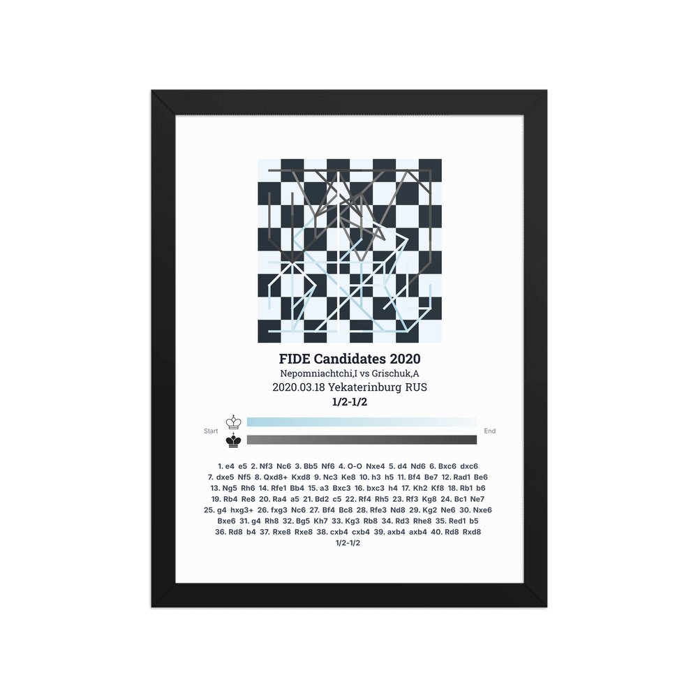 Museum-quality poster on thick, durable matte paper. A sharp, clean look for any chess visualisation.