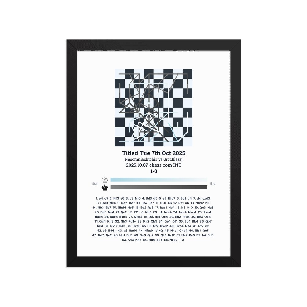 Museum-quality poster on thick, durable matte paper. A sharp, clean look for any chess visualisation.