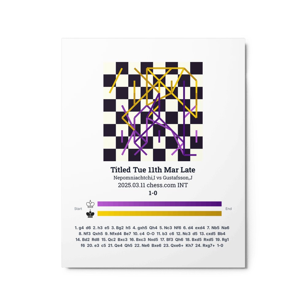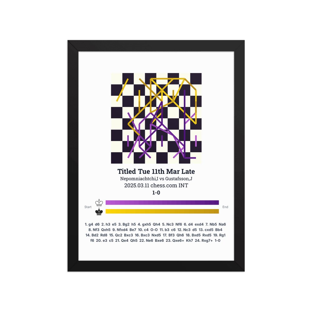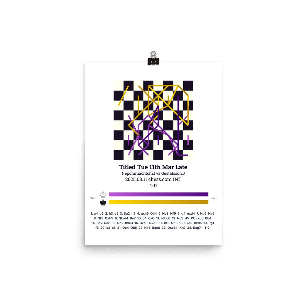 Museum-quality poster on thick, durable matte paper. A sharp, clean look for any chess visualisation.