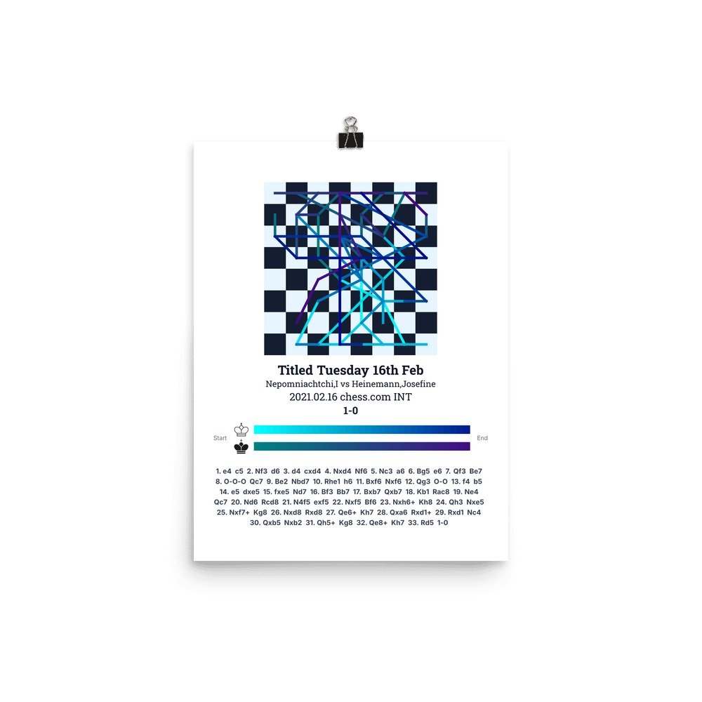 Museum-quality poster on thick, durable matte paper. A sharp, clean look for any chess visualisation.