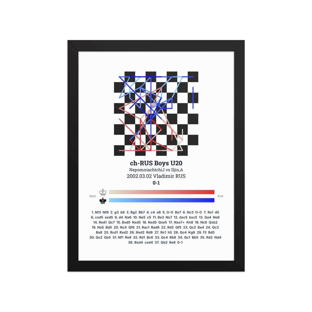 Museum-quality poster on thick, durable matte paper. A sharp, clean look for any chess visualisation.