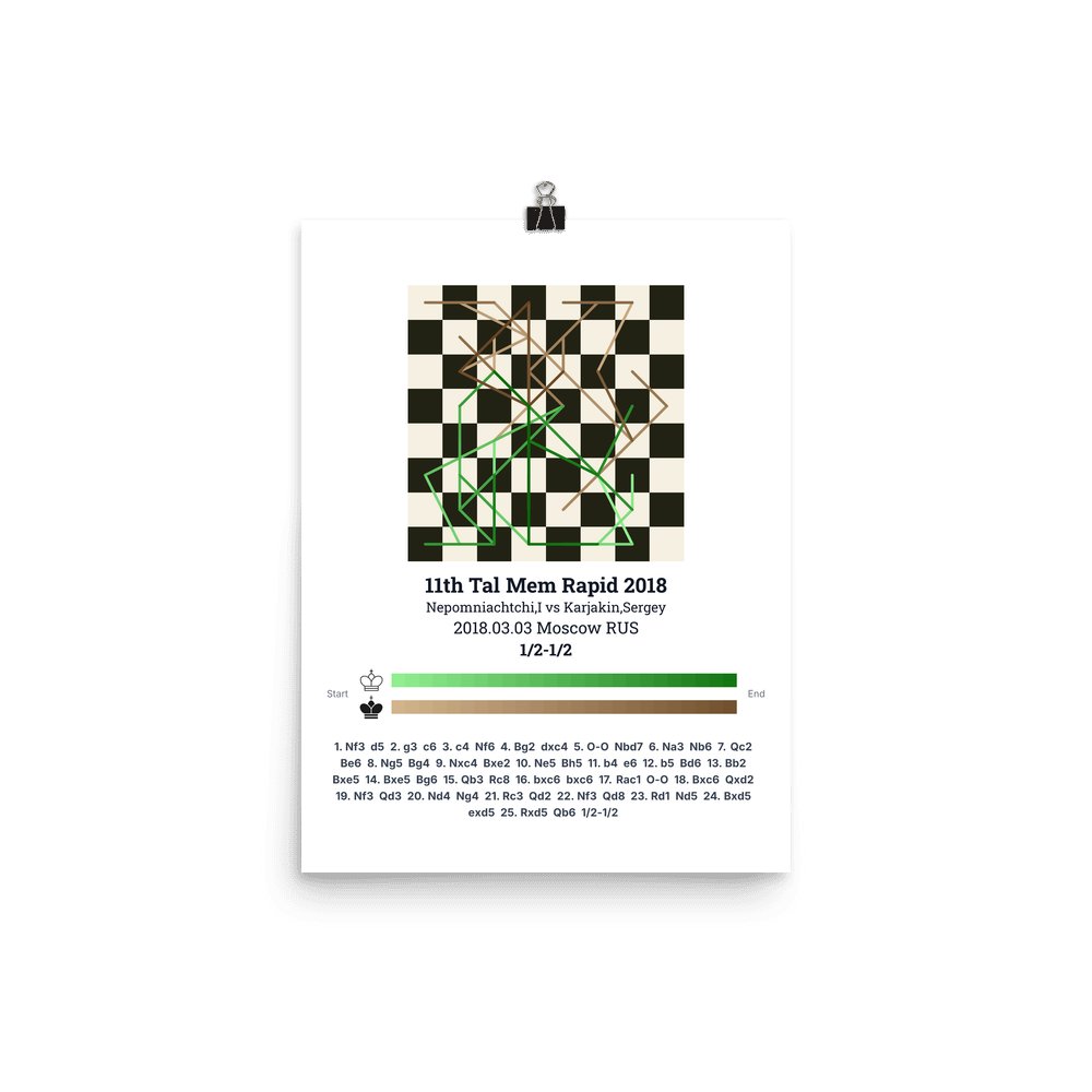 Museum-quality poster on thick, durable matte paper. A sharp, clean look for any chess visualisation.