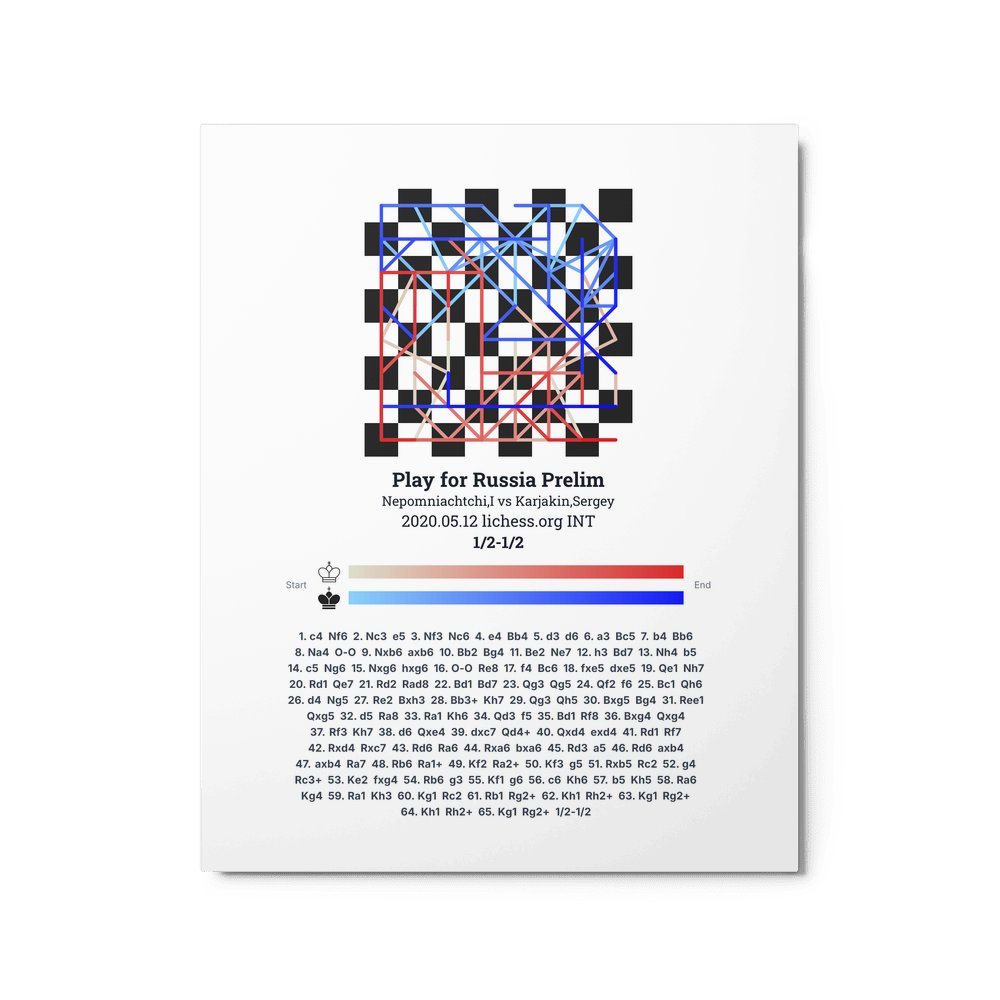 Museum-quality poster on thick, durable matte paper. A sharp, clean look for any chess visualisation.