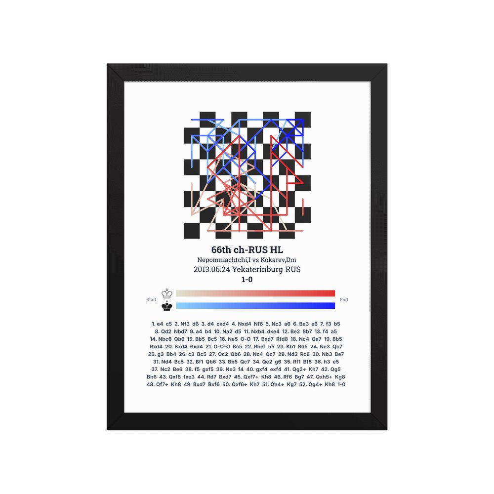 Museum-quality poster on thick, durable matte paper. A sharp, clean look for any chess visualisation.