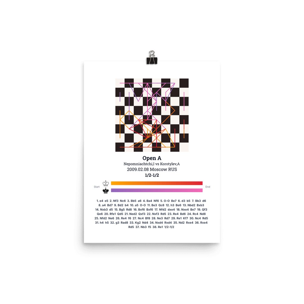 Museum-quality poster on thick, durable matte paper. A sharp, clean look for any chess visualisation.
