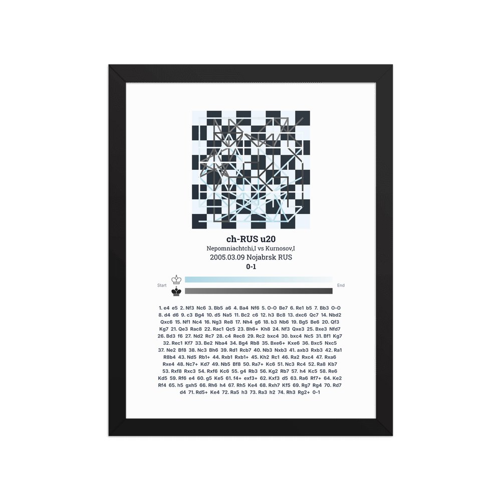 Museum-quality poster on thick, durable matte paper. A sharp, clean look for any chess visualisation.