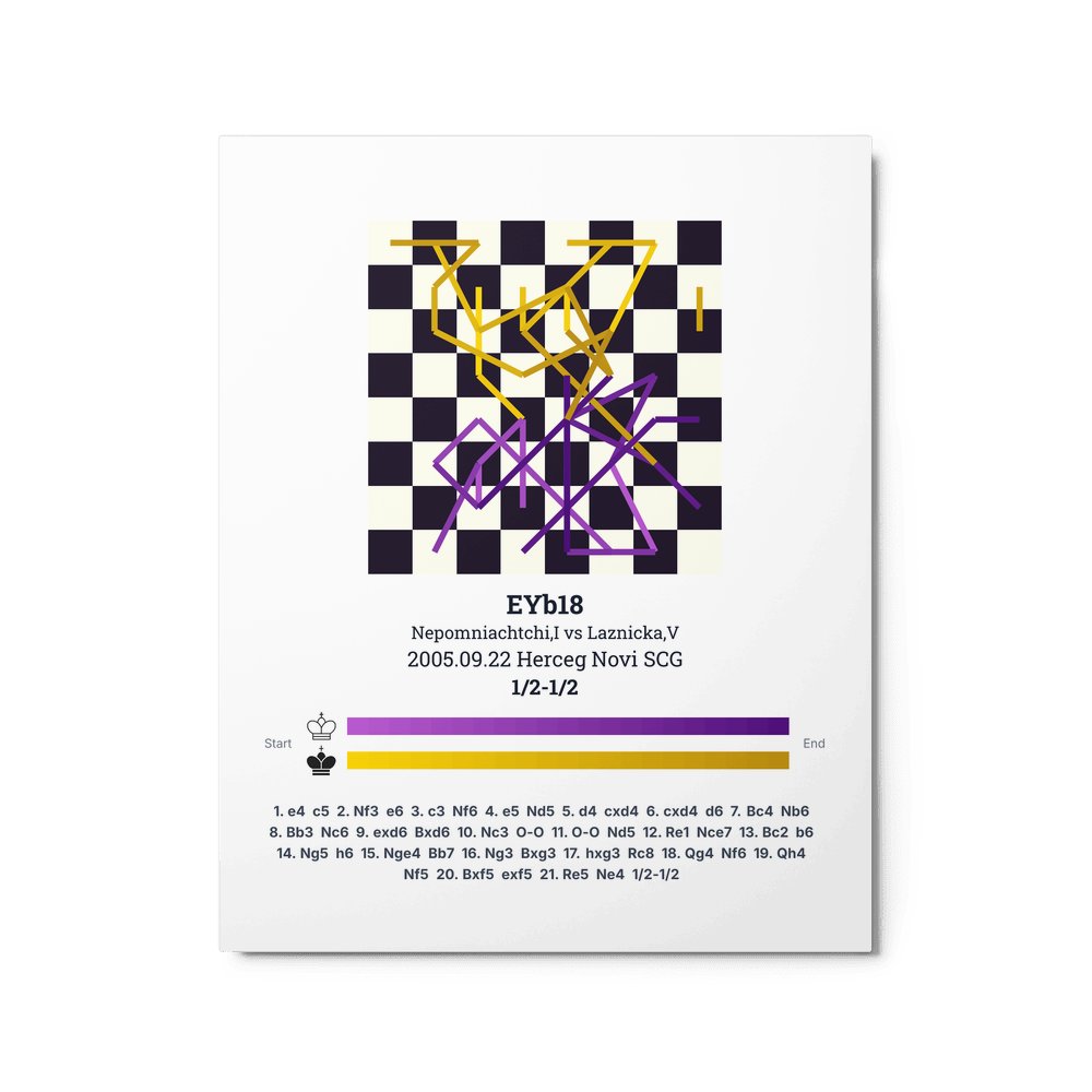 Museum-quality poster on thick, durable matte paper. A sharp, clean look for any chess visualisation.