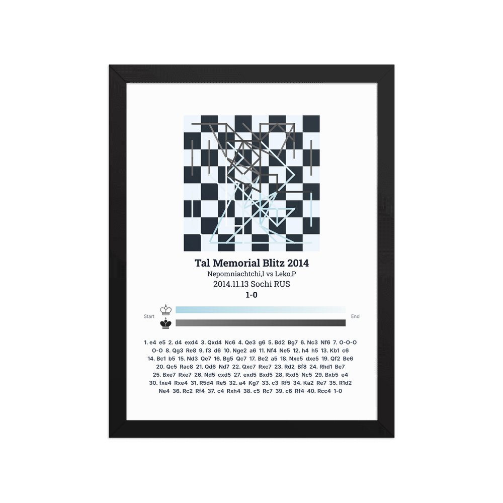 Museum-quality poster on thick, durable matte paper. A sharp, clean look for any chess visualisation.