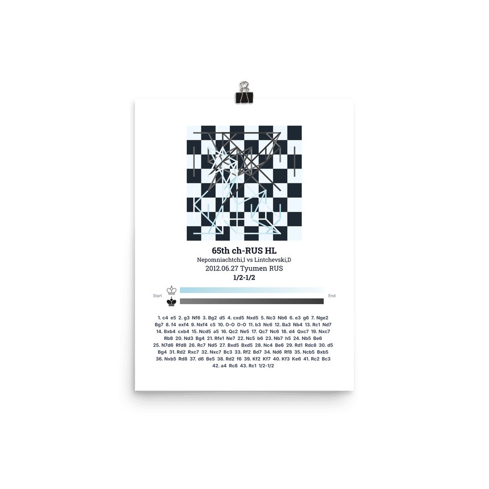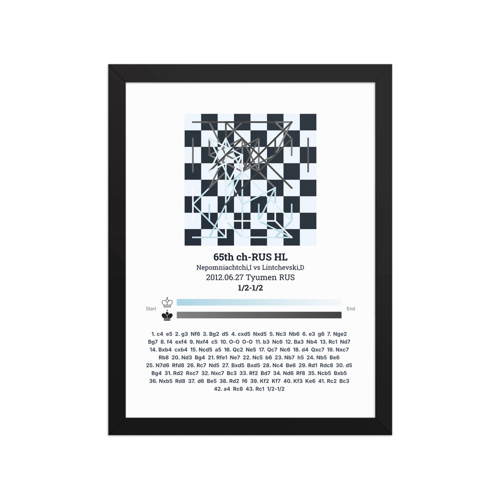 Museum-quality poster on thick, durable matte paper. A sharp, clean look for any chess visualisation.