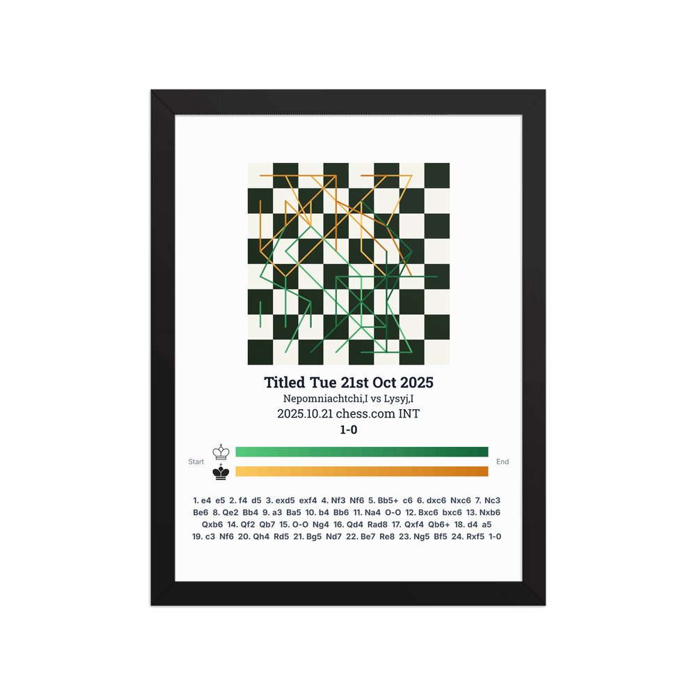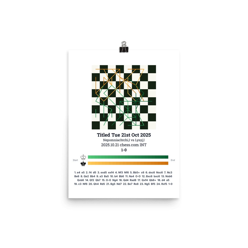 Museum-quality poster on thick, durable matte paper. A sharp, clean look for any chess visualisation.