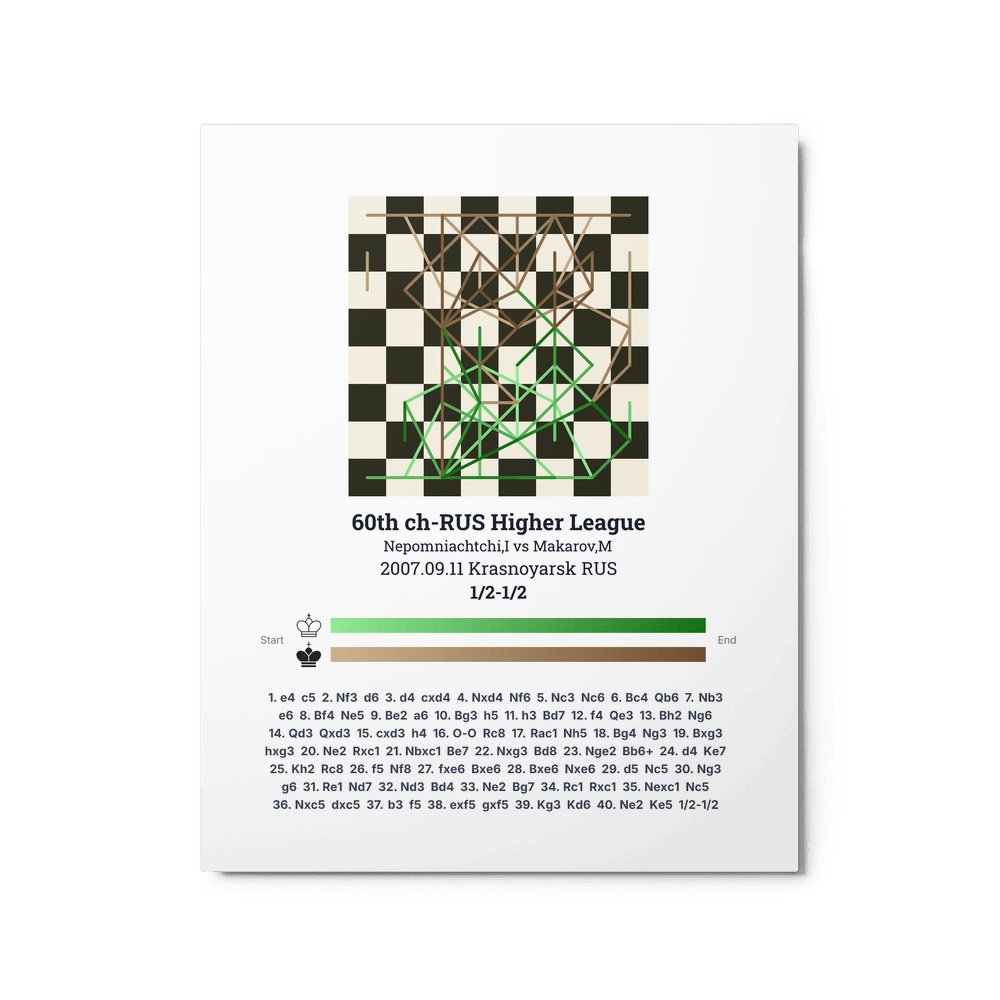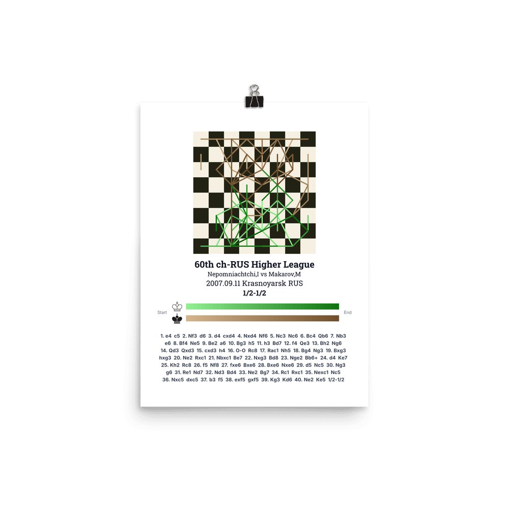 Museum-quality poster on thick, durable matte paper. A sharp, clean look for any chess visualisation.