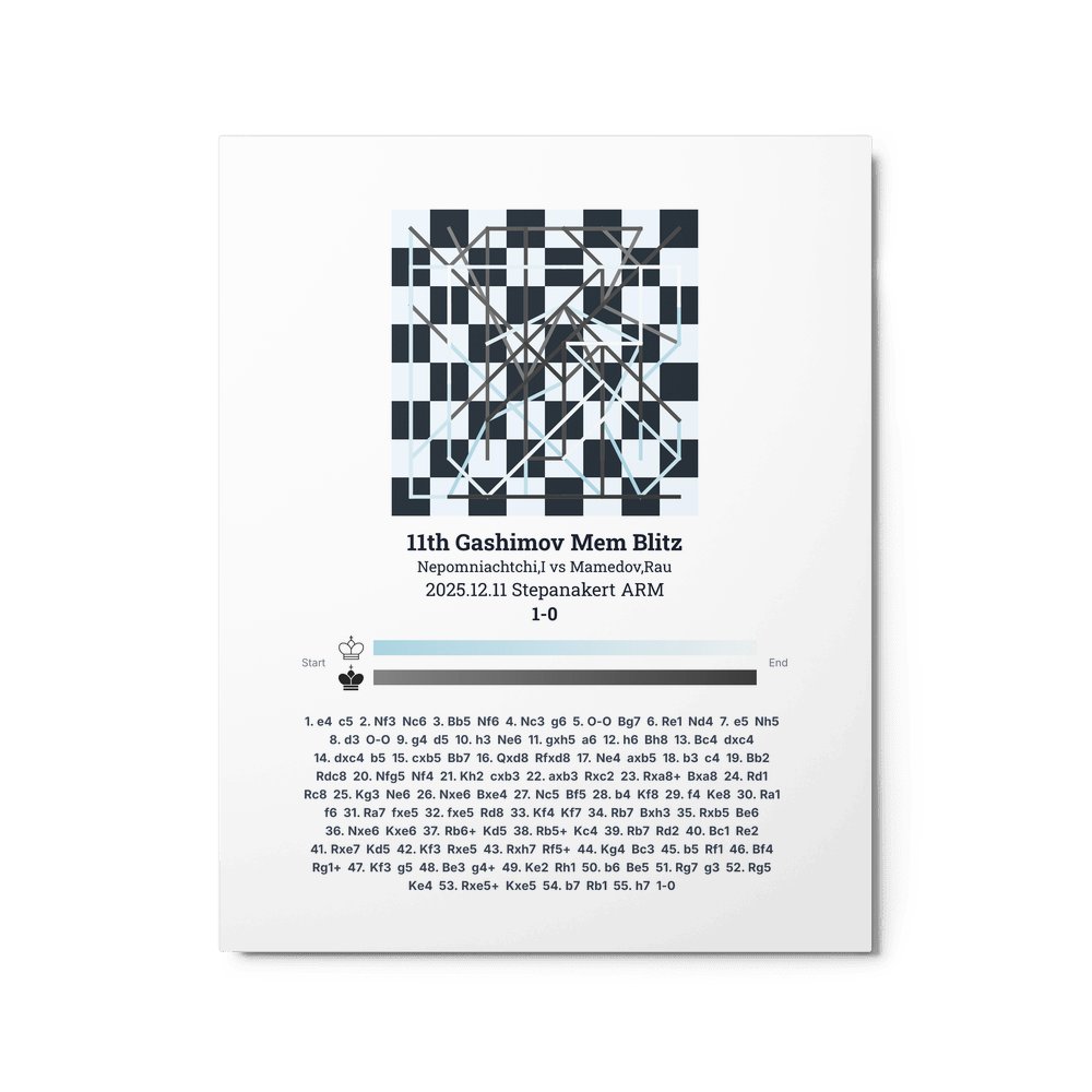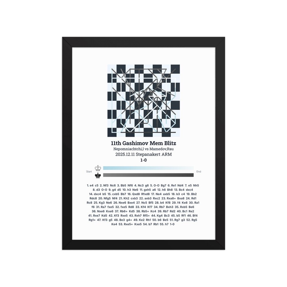 Museum-quality poster on thick, durable matte paper. A sharp, clean look for any chess visualisation.