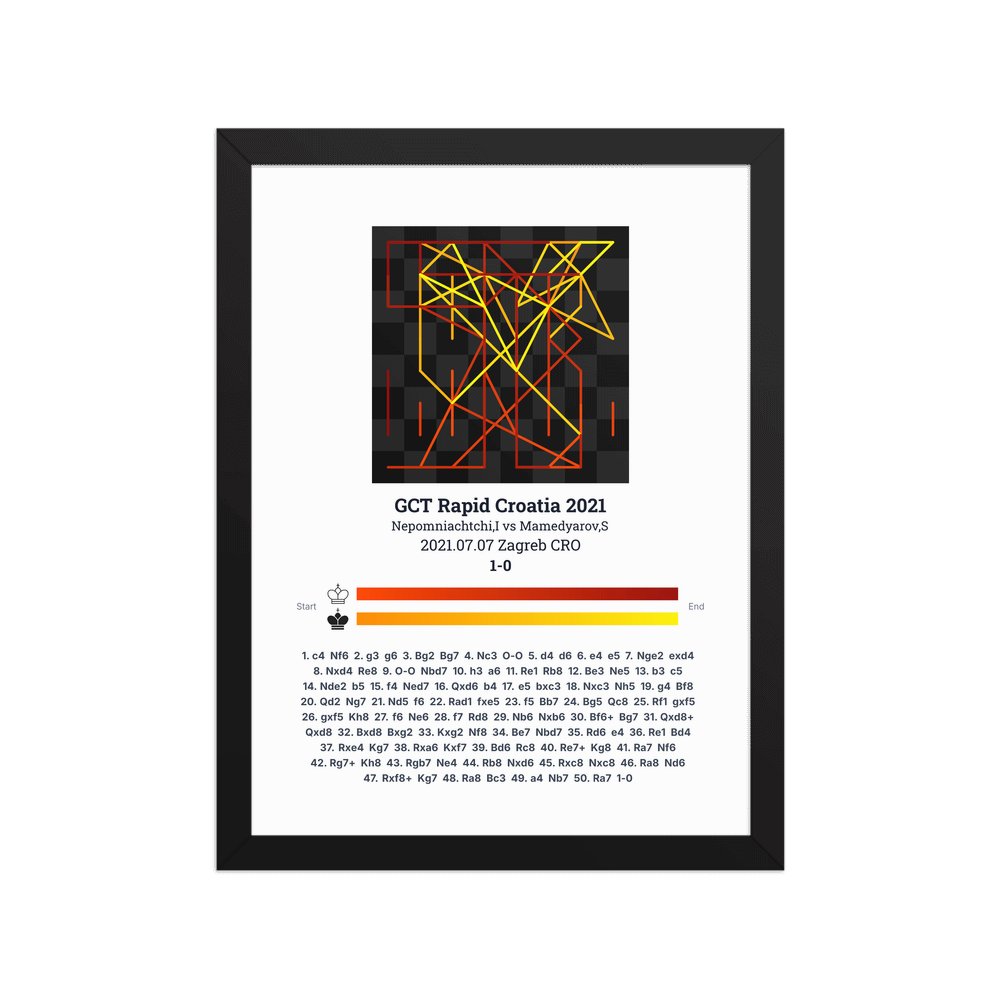 Museum-quality poster on thick, durable matte paper. A sharp, clean look for any chess visualisation.