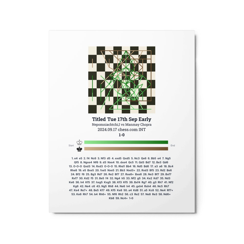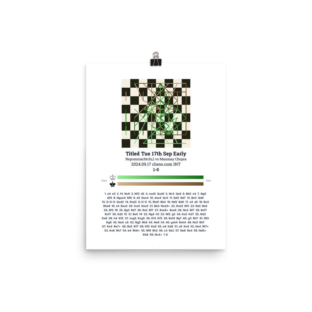 Museum-quality poster on thick, durable matte paper. A sharp, clean look for any chess visualisation.