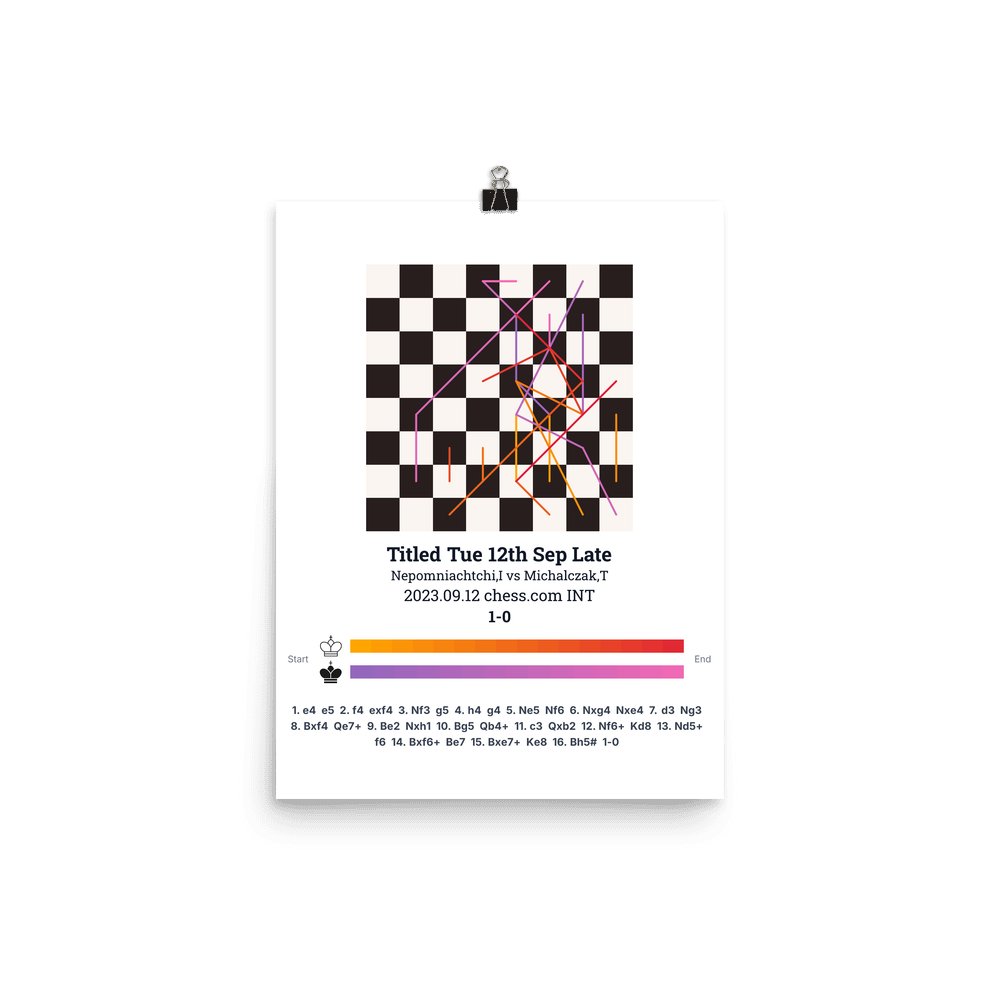 Museum-quality poster on thick, durable matte paper. A sharp, clean look for any chess visualisation.