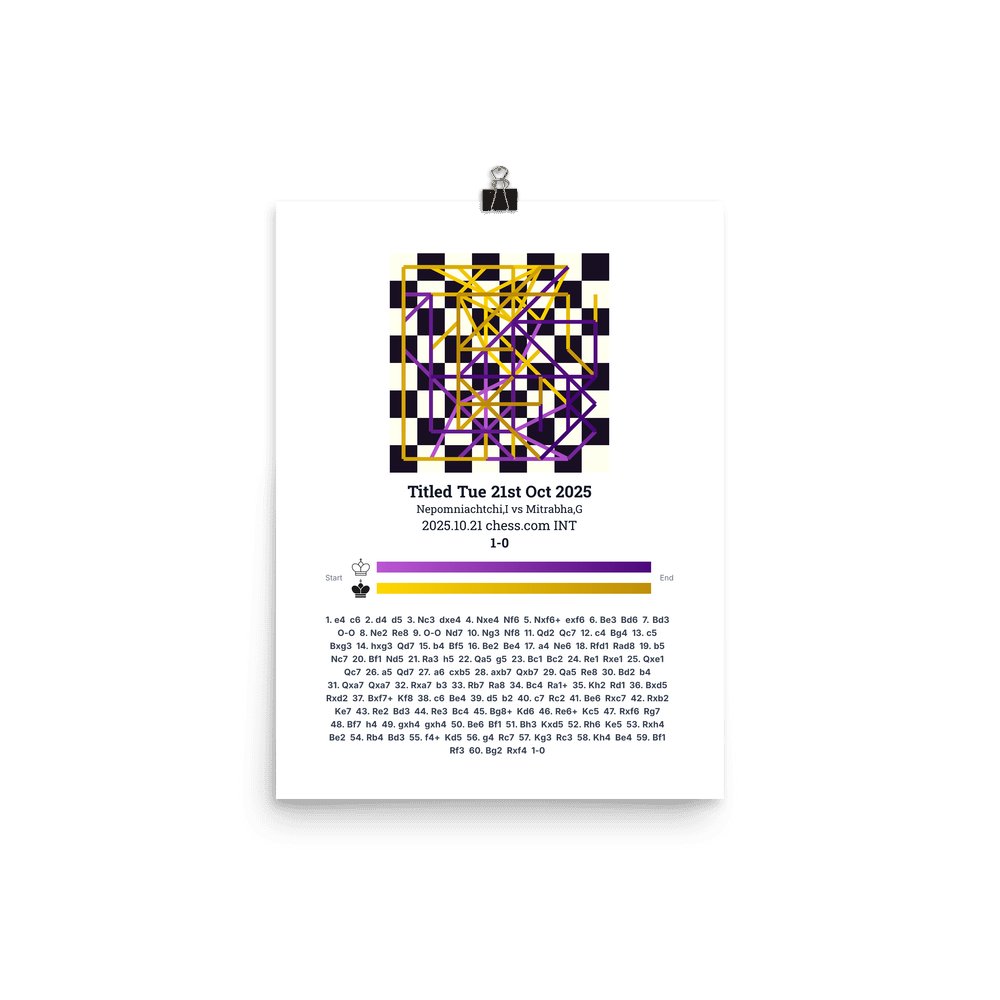Museum-quality poster on thick, durable matte paper. A sharp, clean look for any chess visualisation.