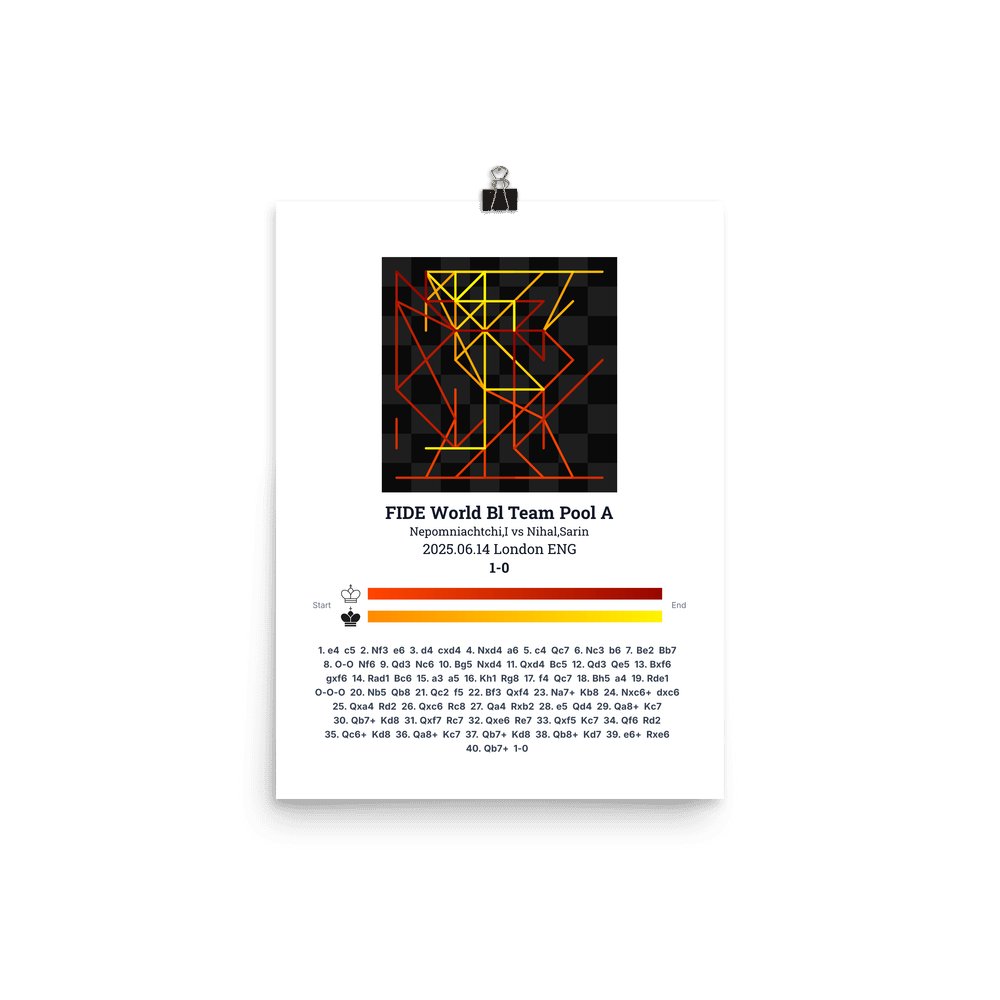 Museum-quality poster on thick, durable matte paper. A sharp, clean look for any chess visualisation.