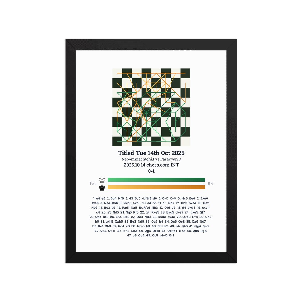 Museum-quality poster on thick, durable matte paper. A sharp, clean look for any chess visualisation.