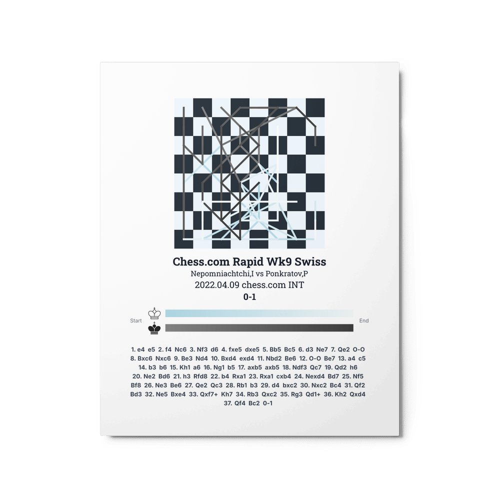 Museum-quality poster on thick, durable matte paper. A sharp, clean look for any chess visualisation.
