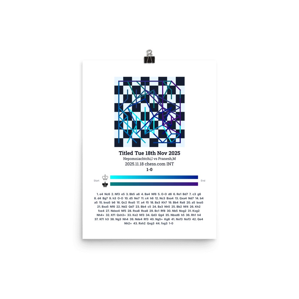 Museum-quality poster on thick, durable matte paper. A sharp, clean look for any chess visualisation.