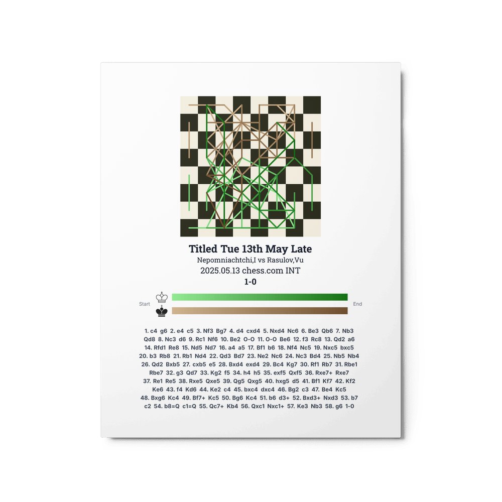 Museum-quality poster on thick, durable matte paper. A sharp, clean look for any chess visualisation.