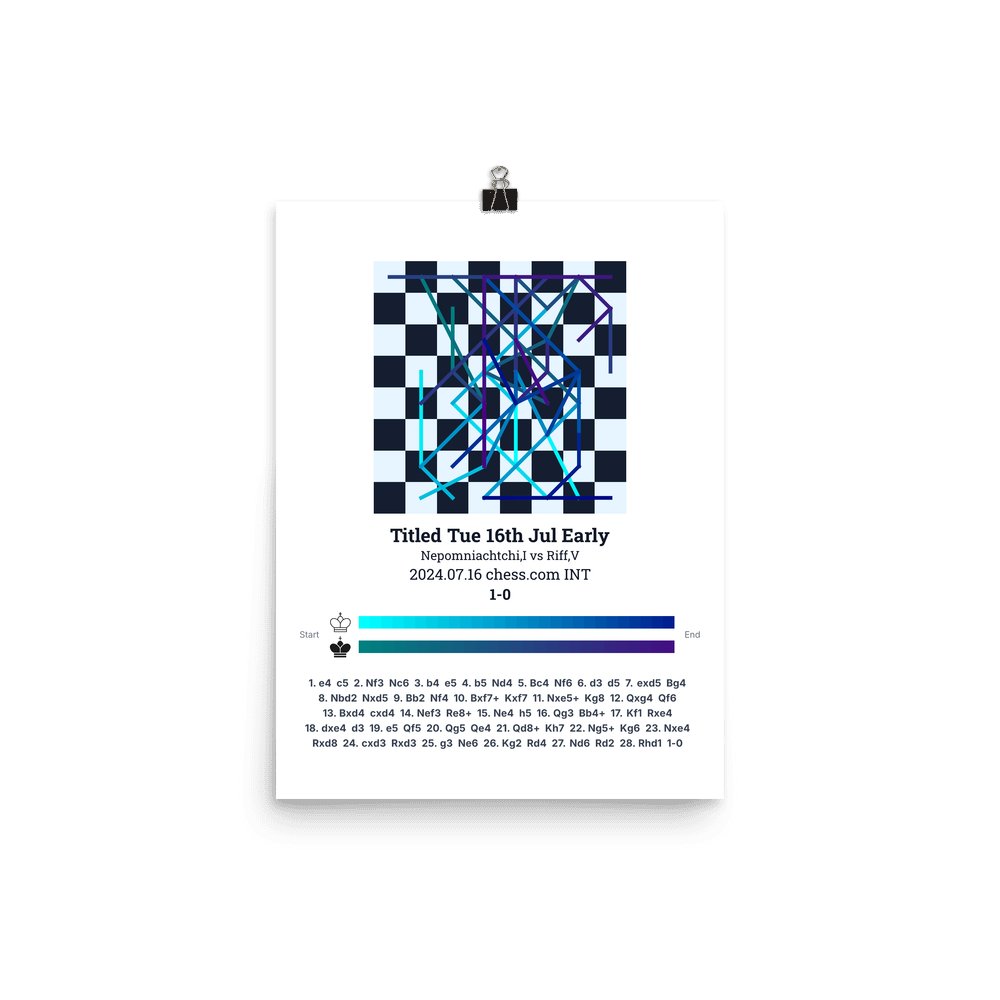 Museum-quality poster on thick, durable matte paper. A sharp, clean look for any chess visualisation.