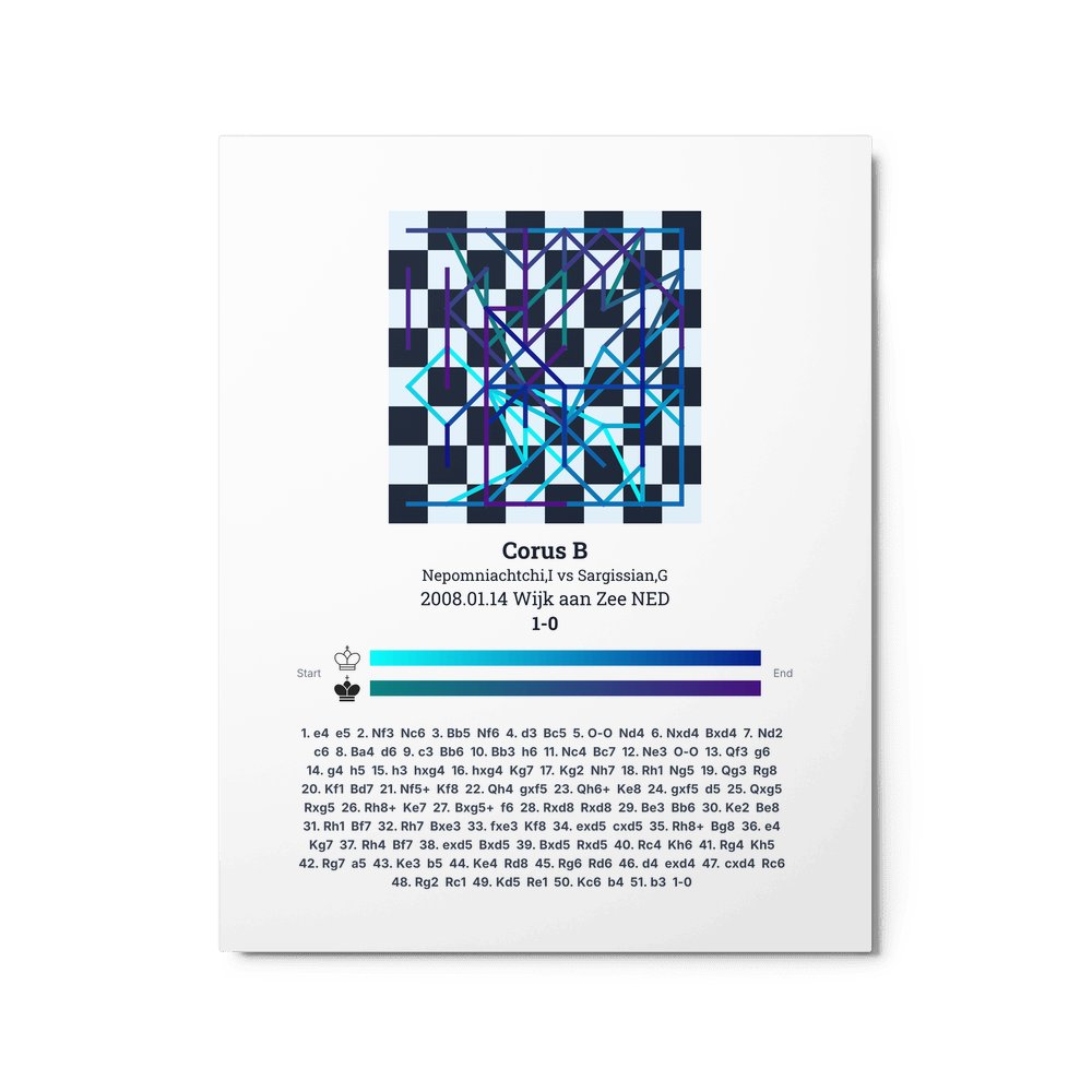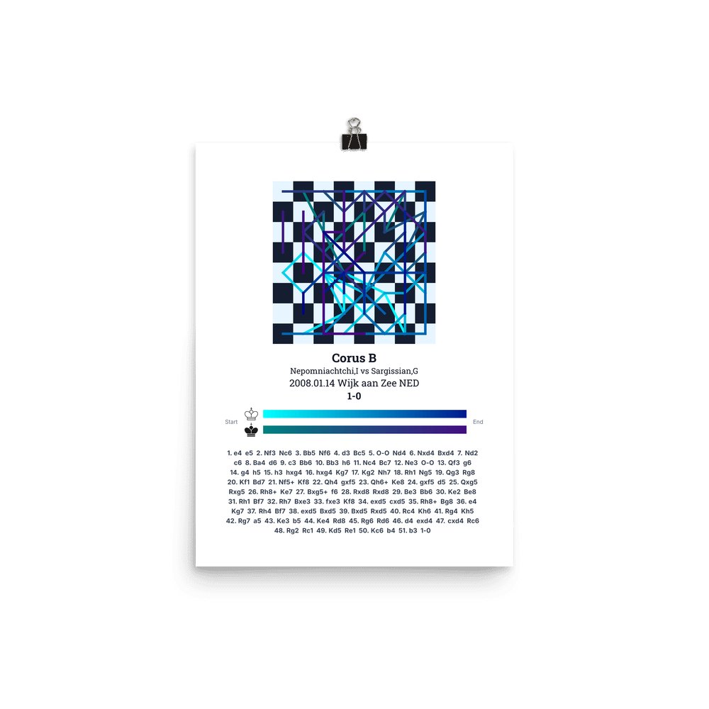 Museum-quality poster on thick, durable matte paper. A sharp, clean look for any chess visualisation.