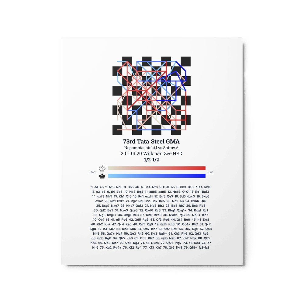 Museum-quality poster on thick, durable matte paper. A sharp, clean look for any chess visualisation.