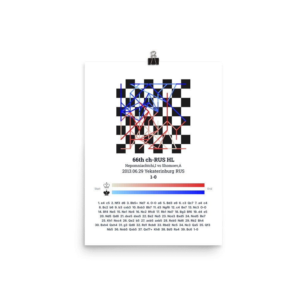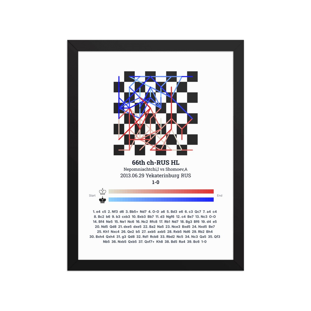 Museum-quality poster on thick, durable matte paper. A sharp, clean look for any chess visualisation.