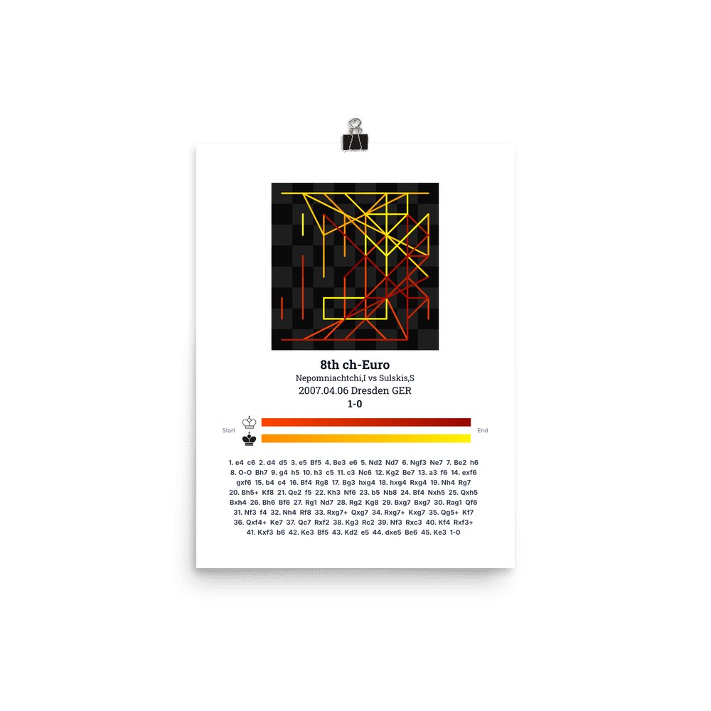 Museum-quality poster on thick, durable matte paper. A sharp, clean look for any chess visualisation.