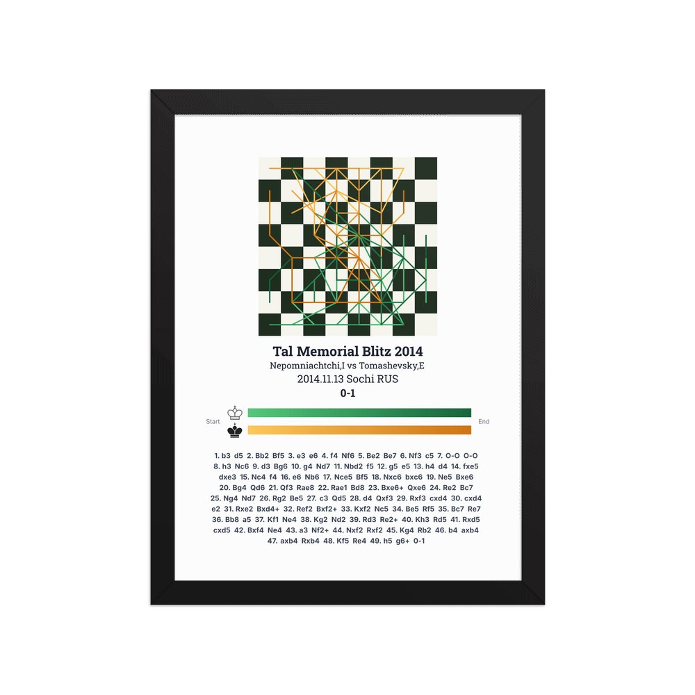 Museum-quality poster on thick, durable matte paper. A sharp, clean look for any chess visualisation.