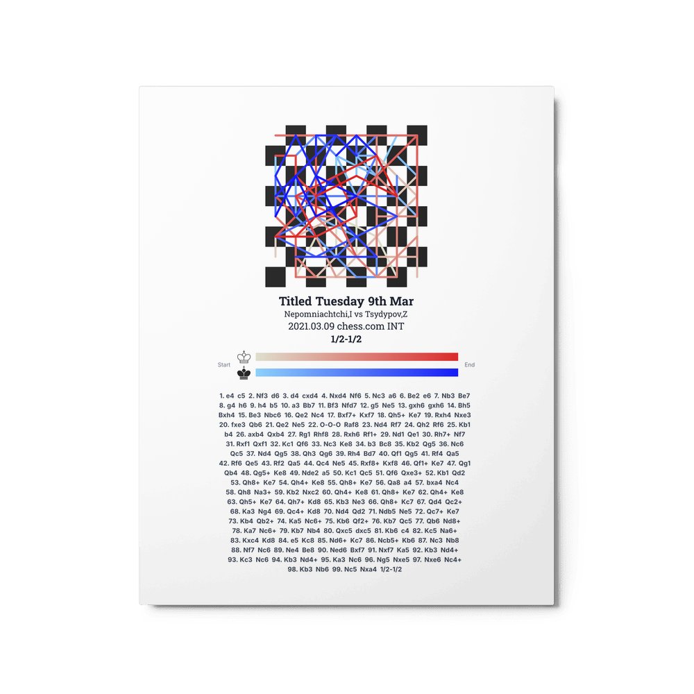 Museum-quality poster on thick, durable matte paper. A sharp, clean look for any chess visualisation.