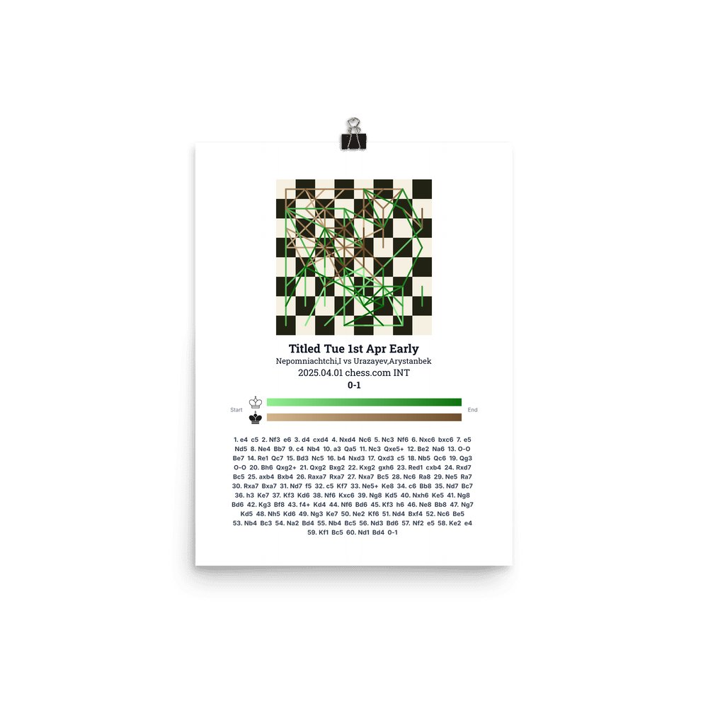 Museum-quality poster on thick, durable matte paper. A sharp, clean look for any chess visualisation.