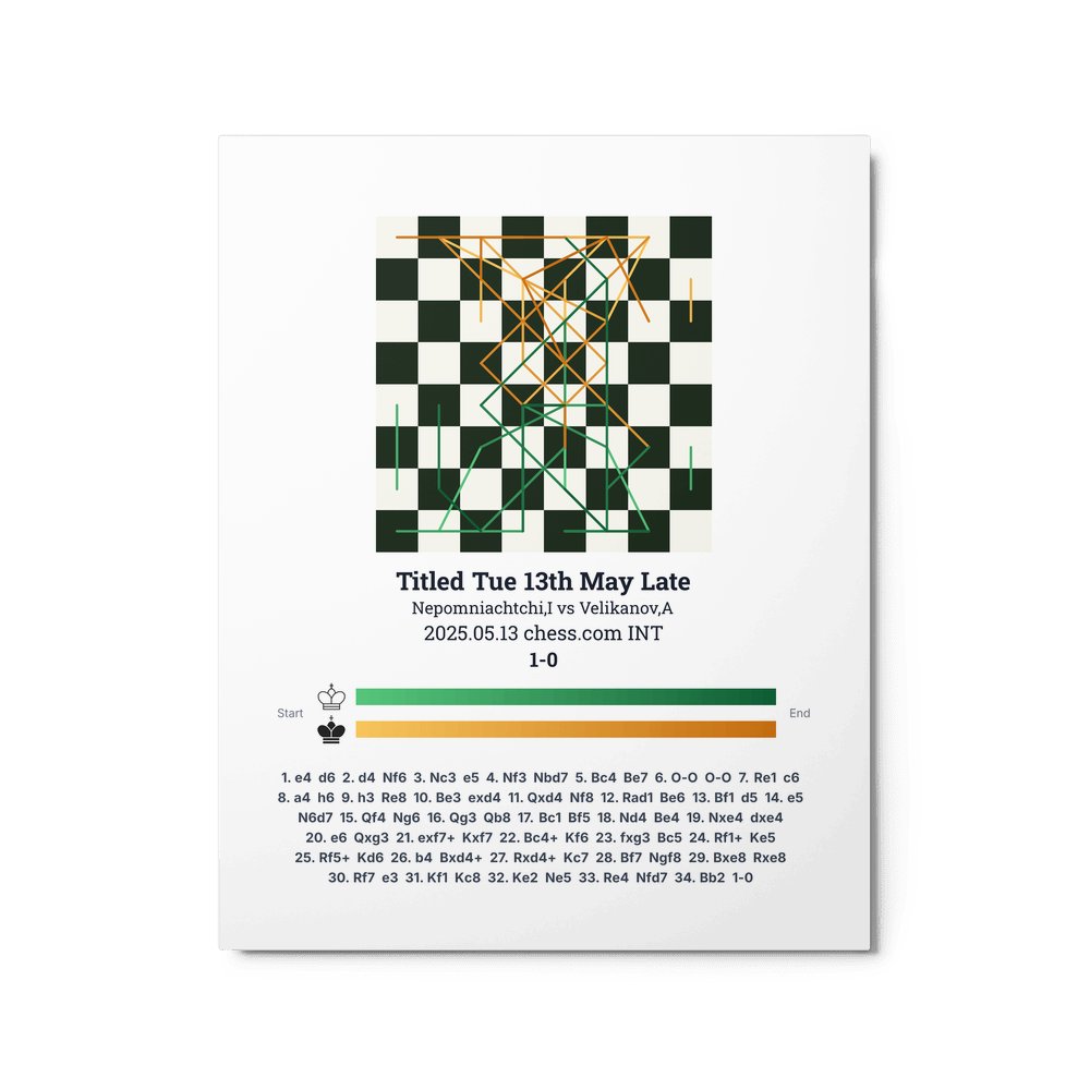 Museum-quality poster on thick, durable matte paper. A sharp, clean look for any chess visualisation.