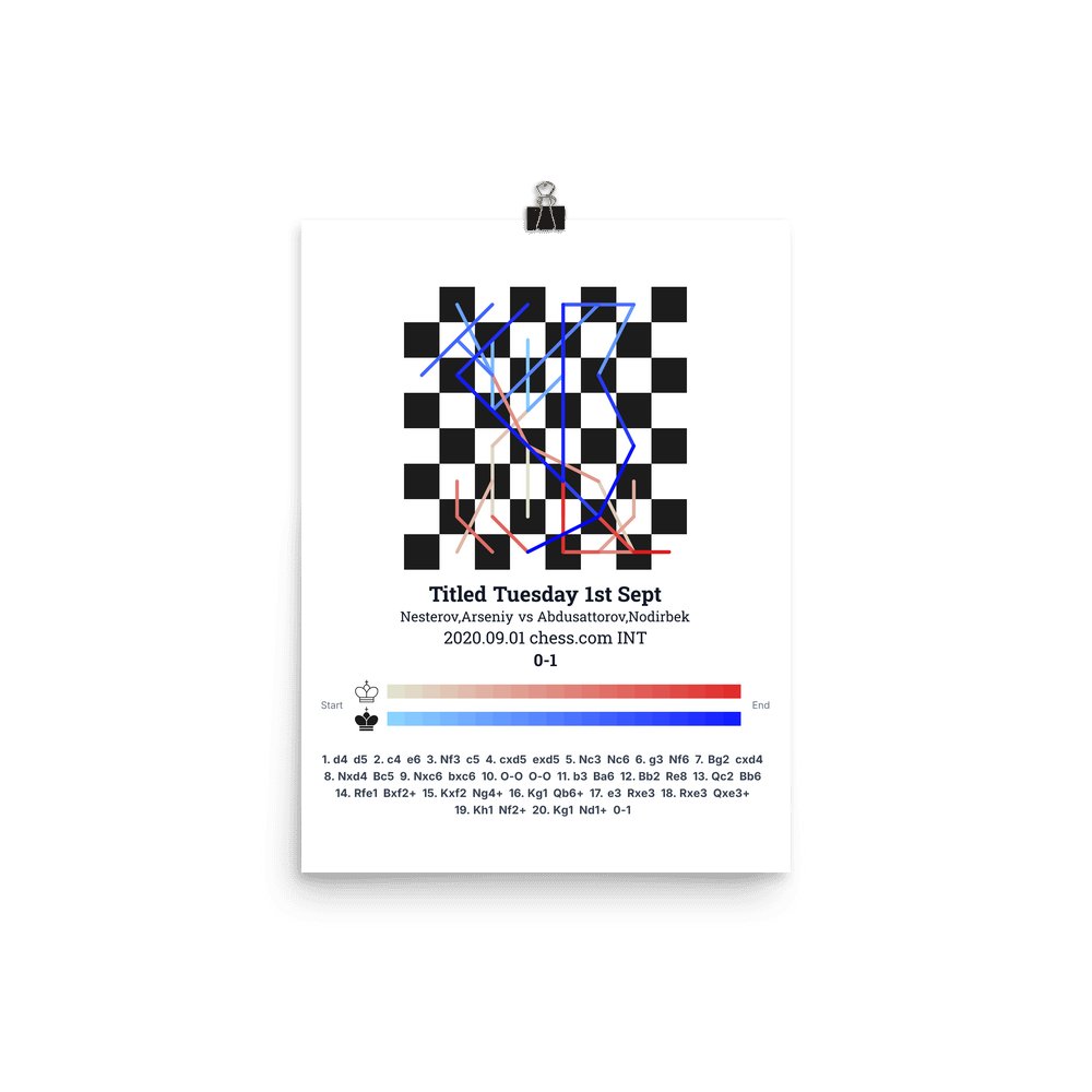Museum-quality poster on thick, durable matte paper. A sharp, clean look for any chess visualisation.