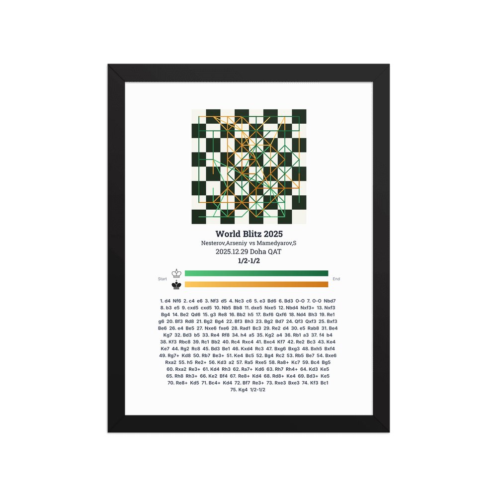 Museum-quality poster on thick, durable matte paper. A sharp, clean look for any chess visualisation.