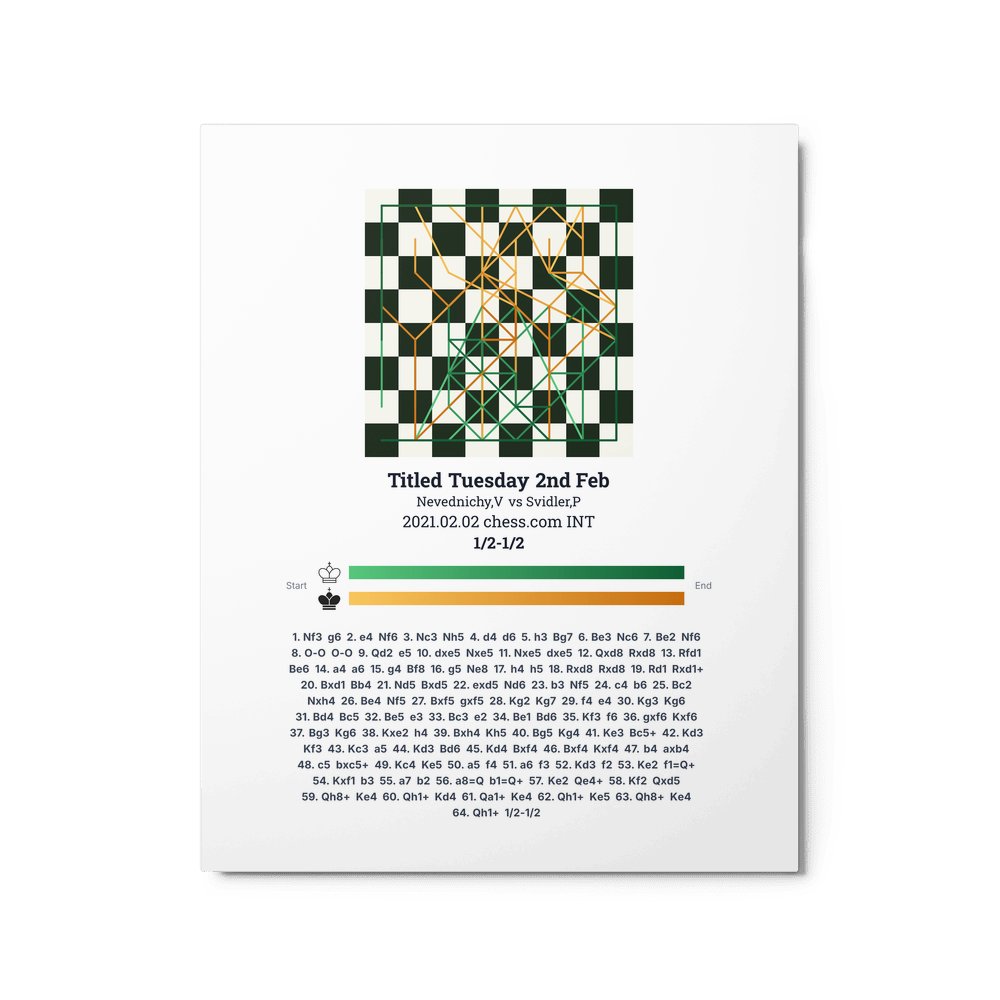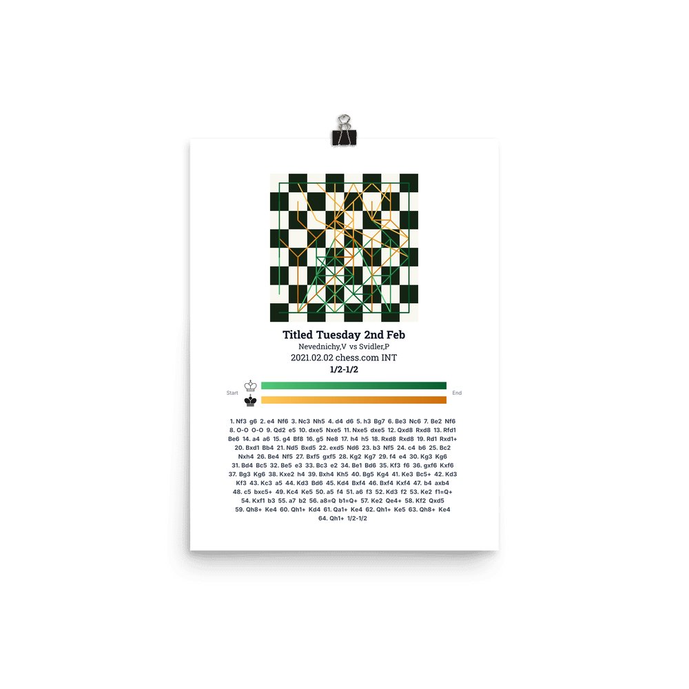 Museum-quality poster on thick, durable matte paper. A sharp, clean look for any chess visualisation.