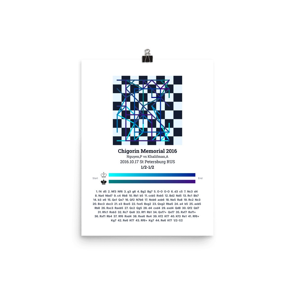 Museum-quality poster on thick, durable matte paper. A sharp, clean look for any chess visualisation.