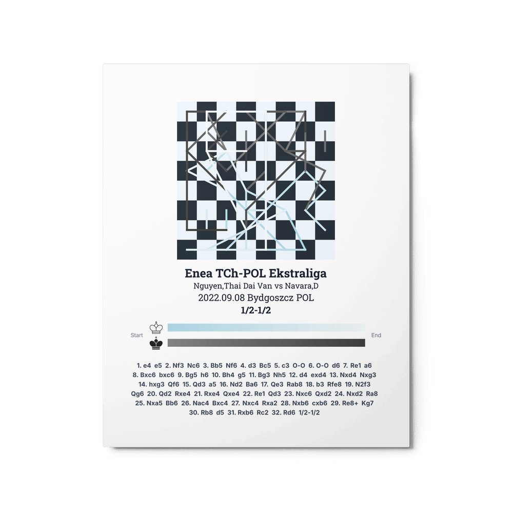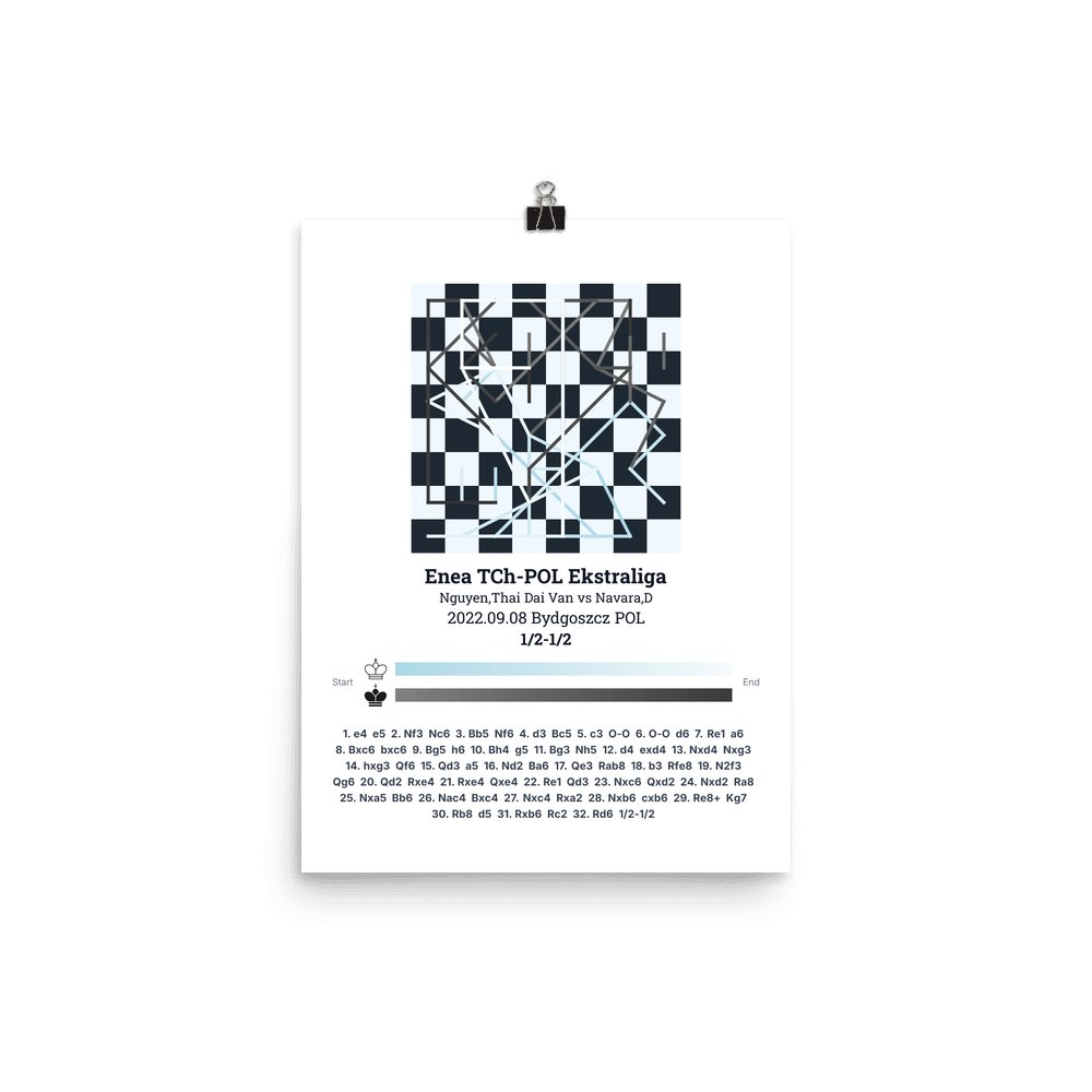 Museum-quality poster on thick, durable matte paper. A sharp, clean look for any chess visualisation.